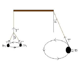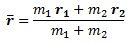 El centro de gravedad de dos cuerpos de masas «m1» y «m2» y de posiciones «r1» y «r2» se ubicará en una posición:
