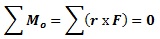 Así pues, para completar el equilibrio rotacional se introduce el concepto de «momento» de una fuerza (M0). El momento de una fuerza respecto a un punto «0» se define como el producto vectorial de la posición del origen de la fuerza y la propia fuerza:
