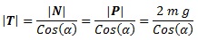 Así pues, T estará dividido por un valor menor que 1 que aumentará su valor, haciendo que T sea mayor que T’, y el sistema sea inestable. Observemos que si α = 90º, la tensión (T) sería infinita.