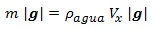 A su vez, el volumen de agua desplazada se despeja de la fórmula de la densidad: