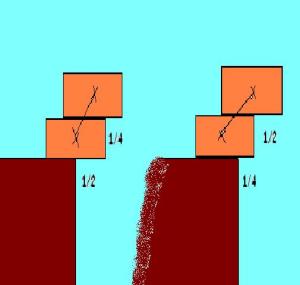 Dado que el centro de gravedad se ubica en la distancia media de los centros de cada uno de los ladrillos, el más estable es el segundo porque coincide con la perpendicular de la pared.