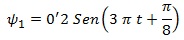 Se observan dos puntos de una cuerda al pasar una onda móvil por ella. Uno de ellos está ubicado en el origen «O», y el otro a un metro de él. Si sus ecuaciones de posición son:calcular la frecuencia de la onda, la longitud y la velocidad de propagación.