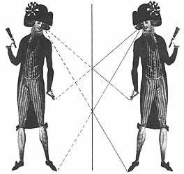 Es decir, la distancia y el ángulo desde la rodilla al punto de choque con el espejo tiene que ser igual que la del ojo, y esto solo se cumple si la perpendicular al punto medio entre ambas partes del cuerpo corta al espejo. Consecuentemente, por mucho que te alejes del espejo, si el punto medio entre cualquier parte del cuerpo y el ojo se conserva, la fracción de cuerpo reflejada en el espejo es constante.