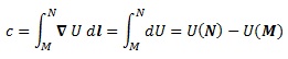 , ya que el punto inicial sobre la curva coincide con el final. La función «V» recibe el nombre de potencial del campo de vectores y al campo de vectores que se obtiene a través del gradiente del potencial cambiado de signo, se dice que deriva de un potencial. De todo esto podemos concluir que: