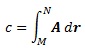 Sea una región del espacio donde existe definido un campo de vectores «A«; tomemos un curva cualquiera «MN«. Por definición, se llama circulación «c» del vector «A«, a lo largo de la curva «MN«, a la integral curvilínea: