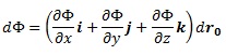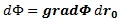 Siendo el primer miembro la derivada direccional de Φ según la dirección dada por «dr0«, nos da la variación del escalar por unidad de longitud.