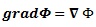 Llamaremos entonces gradiente de la función escalar Φ al vector: