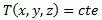 Cuando estas superficies se cortan por un plano se convierten en las llamadas curvas de nivel o isoescalares, que según  la magnitud física que representan reciben un nombre particular: las isotermas se definen por: