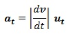 , siendo «u» un vector unitario tangente a la trayectoria.