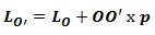 , siendo «L0‘» el momento angular respecto la nueva posición y «OO’» el vector que una la posición inicial con la nueva.