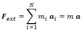 (donde «m» representa la masa total), lo que viene queriendo decir que la aceleración total del sistema de partículas queda determinada únicamente por el conjunto de fuerzas exteriores que actúan sobre él.