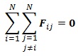 , que es lo mismo que decir que el sumatorio de las fuerzas de cada particula «i» sobre todas las otras partículas «j» es nulo.