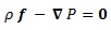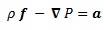, siendo «ρ» la densidad del fluido, «f» la fuerza por unidad de masa y «P» la presión.