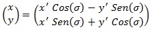 • Rotaciones: tomamos un nuevo sistema de ejes cartesianos O’ X’ Y’ en el que los ejes X’ e Y’ se giran solidariamente un cierto ángulo «α» en sentido antihorario.