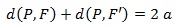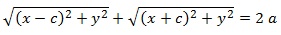 La condición de la elipse será que la suma de las distancias de «P» a cada uno de los focos sean igual a «2 a»: