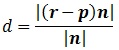 La distancia del punto «p» a la recta es la menor de las distancias de «p» a cualquiera de los puntos de la recta. Sea «r» el vector de posición de cualquier punto de la recta y «p» el vector de posición del punto (px, py), entonces la distancia «d» que buscamos es la proyección del vector «rp» sobre la dirección perpendicular a la recta: