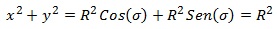Supongamos un círculo con centro en el origen y radio «R». Podemos escribir: