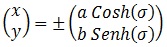 Las ecuaciones paramétricas de una hipérbola de semiejes «a» y «b» son: