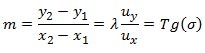 Dados dos puntos de la recta (x1,y1( y (x2,y2) podremos despejar «m» como: