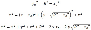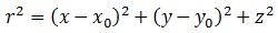Ahora, sabemos que los puntos «P» de nuestro donut tienen que poseer una distancia mínima «r» a la circunferencia base, cálculo para el que tambien podemos trabajar con el cuadrado de dicha distancia: