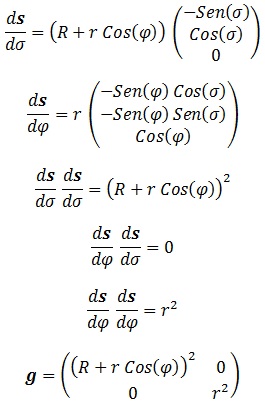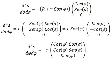 , por lo que necesitamos las derivadas parciales del donut en este proceso, así como sus productos escalares: