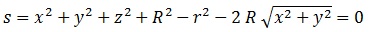 , que nos da la ecuación implícita de nuestra superficie del toro: