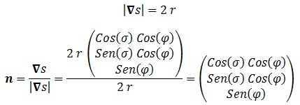 El vector normal a una superficie, recordemos, se definía como el vector unitario en la dirección del gradiente de la ecuación implícita: