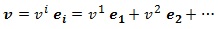 Gracias a la notación de Einstein, podemos expresar un vector como la suma de sus componentes multiplicados por los vectores de la base en la que están expresadas del siguiente modo: