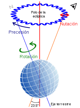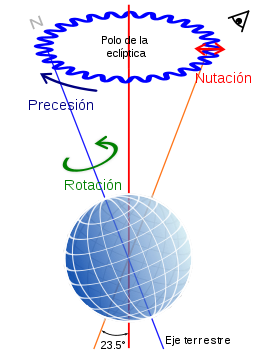 Otro ejemplo de los ángulos de Euler lo tenemos en La Tierra. La traslación en torno al Sol sería nuestra precesión, las oscilaciones que tiene el eje que une los dos polos sería la nutación y la rotación es bien sabido por todos que es el giro que realiza sobre sí misma.