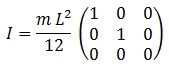 Podemos observar que efectivamente el tensor está diagonalizado y su tercer autovalor es 0 puesto que la varilla no puede girar respecto al eje «z».