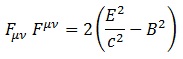 , que es independiente del sistema de referencia y tiene unidades de Tesla cuadrado. Para que nos quede con unidades de energía, definimos la lagrangiana: