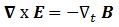 .-La Ley de Faraday nos dice que el rotacional de E es una oposición a la variación de B con el tiempo. Cuando yo tengo un campo B y lo desplazo por el espacio, creo líneas cerradas y curvas de campo E que se le oponen. Faraday descubrió este efecto sobre bovinas conductoras, y dedujo la ley de inducción que hoy en día se usa en todos los circuitos, a saber, que al cambiar B creo corriente: