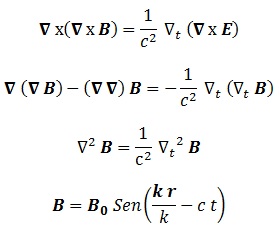 Si a partir de aquí, calculamos el rotacional del rotacional de E teniendo en cuenta las propiedades del doble producto vectorial: