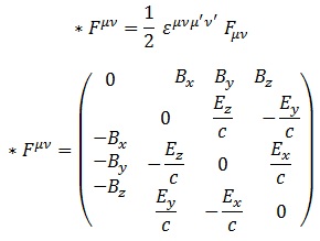 , y en primer lugar uno ya puede observar que los campos eléctrico y magnético cambian de posición en el tensor. De hecho, es posible encontrar un sistema de referencia desde el que el tensor F se vea como su dual a través de una transformación de Lorentz como las que describimos en la relatividad especial.