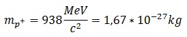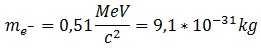 , donde se han considerado el eV como unidad de energía (asociada a la carga del protón) y c como la velocidad de la luz en el vacío: