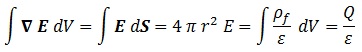 Veamos qué sucede si las integramos, empezando por la Ley de Gauss en una esfera de radio r, en la que aplicaremos el Teorema Integral de Gauss para cambiar una integral de volumen por una de superficie y consideraremos que la integral de la densidad volúmica de carga en el volumen es igual a la carga Q total: