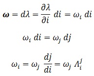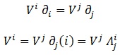 , donde hemos definido una nueva matriz de transformación Λ compuesta de las derivadas parciales de las coordenadas i respecto a las j si queremos pasar del sistema j al i. La matriz de transformación covariante a Λ se definiría justo al revés y además sería su inversa.