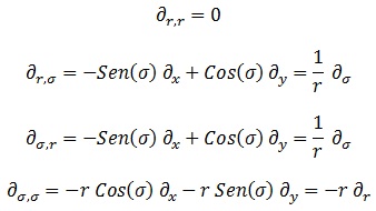 Un buen ejercicio para verificar que se ha comprendido el proceso sería hacer lo mismo desde coordenadas polares hacia cartesianas, siendo nulas las derivadas de derivadas polares.