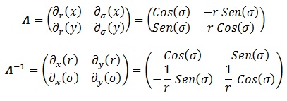 Queremos expresar las derivadas polares en función de las cartesianas. Para ello lo mejor es empezar haciendo una especie de celda en la que las columnas indican la componente cartesiana que derivo y las filas la componente polar respecto a la que la derivé. ¡Los resultados los expreso en polares!