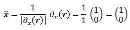 , donde hemos asumido notación de Einstein para representar el producto escalar. Así pues, en virtud de lo que dijimos antes, el vector paramétrico unitario x será: