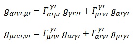 Por último, multiplicando por la mitad de la métrica contravariante tenemos despejada la conexión afín en función de la métrica: