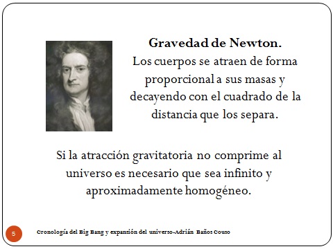 5Vamos a ver cómo empezó a analizarse (Bueno, no voy a volver a Gracia que eso ya sería retrasarse mucho). Newton nos proponía que los cuerpos se atraen de forma proporcional a sus masas y la atracción decaía con el cuadrado de la distancia que los separa. Lo pongo así con letra porque si pongo ecuaciones la gente se va asustando, así que vamos a dejarlo para un poco más adelante.