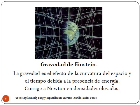 Es importante ver que la teoría de la membrana que conocéis casi todos, de que tenemos una manta y se hunde, eso, no es gravedad de Einstein, pese a que lo digan todos los libros de divulgación. Eso es gravedad de Newton, porque tú si colocas una manta y la hundes, y le tiras una partícula, la órbita que describe evidentemente es lo que te dice Newton, no ves nada nuevo. ¿Alguien ha aprendido algo con la manta que no pueda deducirse de Newton? Veo que no. Entonces ese modelo es erróneo. Lo importante es que se curva también el tiempo, y eso con la manta no lo ves. Si tú te estás moviendo a una velocidad tu concepto de distancia, tiempo, y todas estas cosas varía. O sea, lo importante aquí es el tiempo, no que el espacio esté curvado porque eso ya lo hace Newton. Lo que pasa es que no se expresa en esos términos nunca. Y la gravedad de Einstein sólo es importante para densidades elevadas, que son las únicas que pueden afectar al tiempo lo suficiente como para que la teoría de Newton no sea precisa. Esto como no es de relatividad general no me extiendo mucho más, pero básicamente es así.
