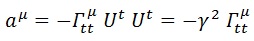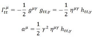 Sustituyendo esto en la ecuación de la geodésica y teniendo en cuenta que sólo sobreviven las coordenadas temporales de la cuadrivelocidad: