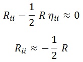 De aquí obtenemos el escalar de curvatura en función de la componente genuinamente temporal del tensor de Ricci: