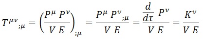 Esto nos garantiza que la divergencia de T va a ser proporcional a la cuadrifuerza K actuando sobre el sistema, y que por tanto en ausencia de fuerzas se conservará: