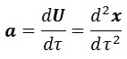 Típicamente λ sería el parámetro que caracterizaría la trayectoria. Por conveniencia elegiremos el tiempo propio τ, que nos permite reescribir esta ecuación como: