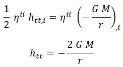 Vemos que si queremos reexpresar la teoría de Newton como una perturbación de la métrica, dicha perturbación tiene que ser exactamente 2 veces el potencial gravitatorio. Esto implica que su laplaciano será también el doble del de Newton, y aquí encontramos al fin la relación entre métrica y energía: