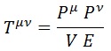 Con el campo de cuadrimomentos de un fluido (volumen relleno de partículas en movimiento) es posible crear un tensor de rango 2 multiplicándolo tensorialmente por sí mismo. Sin embargo, este objeto tendría unidades de energía al cuadrado y buscamos un tensor que nos hable de la energía concentrada en un punto, por lo que dividimos entre la energía del cuerpo, recuperando unidades de energía, y dividimos entre el volumen V que ocupa. Este objeto creado es análogo al tensor de tensiones visto en física de fluidos, añadiendo las componentes temporales: