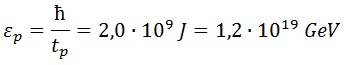 O la energía de Planck asociada a un haz de luz de periodo igual al tiempo de Planck: